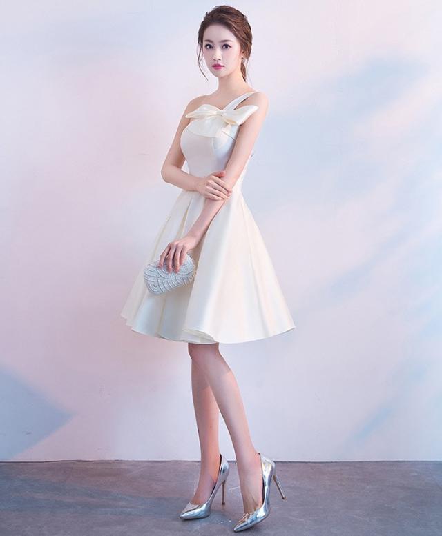 ドレス レディース 膝丈 ピアノ 発表会 パーティードレス 結婚式 イブニングドレス チューブトップ 袖なし リボン フォーマル 着痩せ きれいめ ファスナータイプ エレガント お呼ばれ 二次会 披露宴 演奏会 忘年会 司会ドレス シャンパン XS-4L
