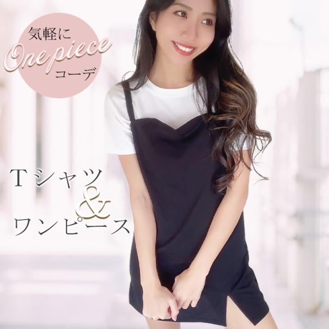 Tシャツ & ワンピース レディース 2点セット サロペット ジャンパースカート シンプル コーデ トレンド デザイン 流行 ワンピ カジュアル 韓国ファッション メール便送料無料 韓国風