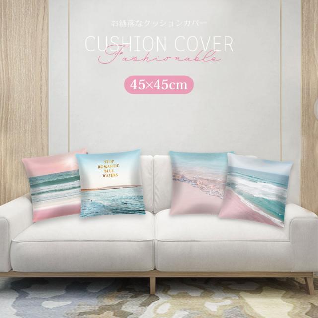 クッションカバー 45×45cm おしゃれ かわいい 姫部屋 北欧 プリント クッション フラワー 海 オーシャン ピンク 韓国 インテリア アメリカ 西海岸 東海岸 コースト 海辺 波 サーフィン