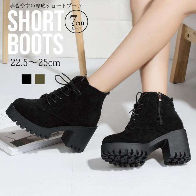 ブーツ ショートブーツ レースアップ 厚底 厚底ヒール エンジニア ブーツ ブーティ レースアップ サイドジップ スエード 素材 ガーリー シンプル かわいい 幅広 ワークブーツ 秋冬 ヒール