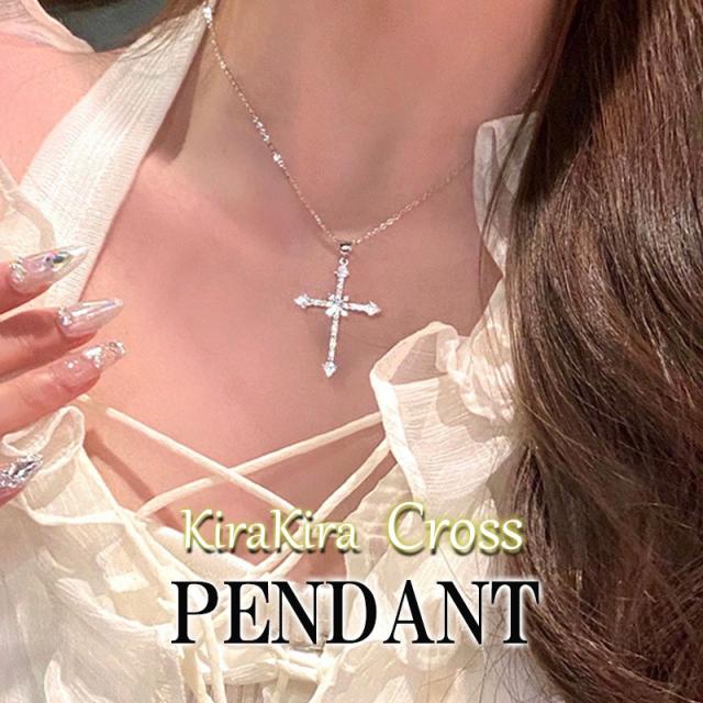 クロスネックレス レディース キラキラ 大きい ペンダント ペンダント スシンプル 華奢 大人可愛い かわいい デイリー アクセサリー プレゼント 大人 女性 大人女子 シルバー