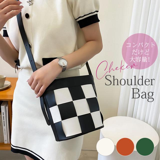 ショルダーバッグ レディース 斜めがけ チェッカー ブロックチェック かわいい 小さめ 大人 落ち着いた シンプル 四角 エレガント 通勤 通学 OL 仕事 大人女子 合皮 ハンドバッグ