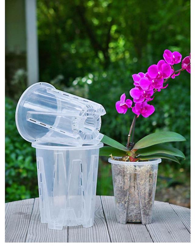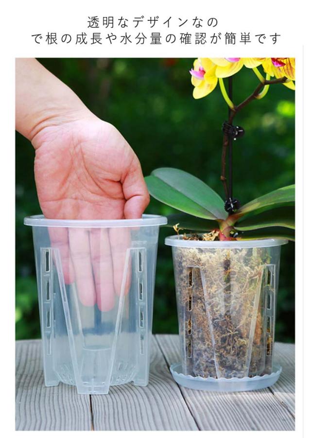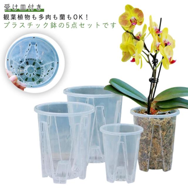 プランター 植木鉢 プラスチック スリット鉢 透明鉢 観葉植物 多肉植物 鉢植え 穴付き オーキッドポット 受け皿付き 胡蝶蘭鉢 育苗ポット 園芸用品 5点セット 送料無料