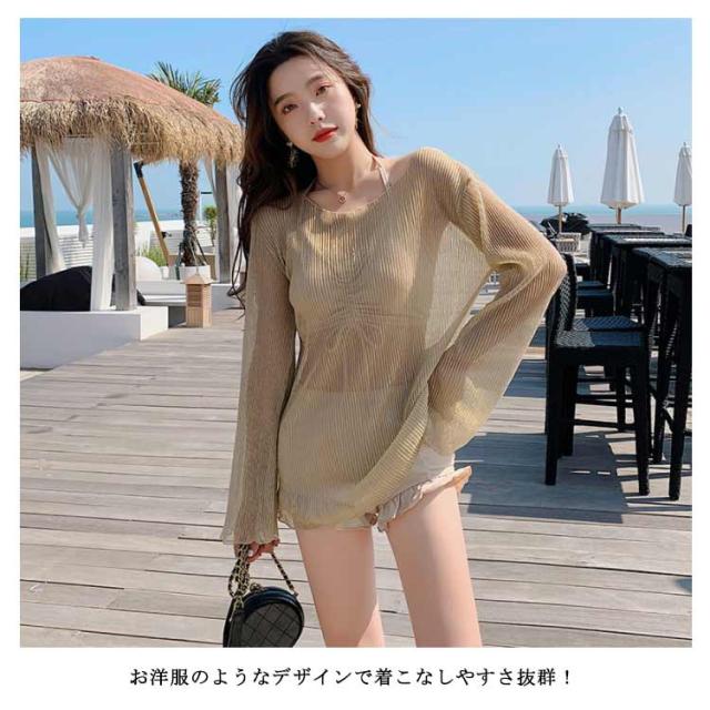 | 上品な可愛いらしさとセクシーな雰囲気を合わせた大人可愛い水着 太陽の下でキラキラと光る光沢感のあるトップスは大人おしゃれな1着。 ショートパンツも楽に着用ができ、カジュアル感プラスしてくれます。裾はフリルデザインで脚の細見せ効果にも◎ 透け感のあるシャツは露出を抑えるの同時におしゃれを邪魔にならない、女性美しいシルエットも演出する。 お洋服のようなデザインで着こなしやすさ抜群! | |