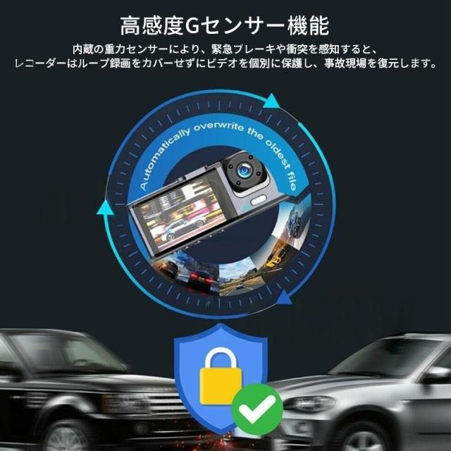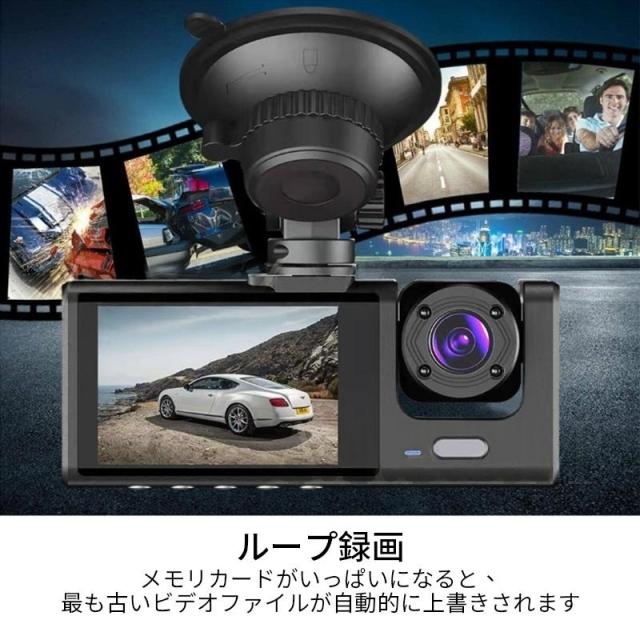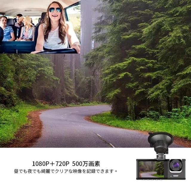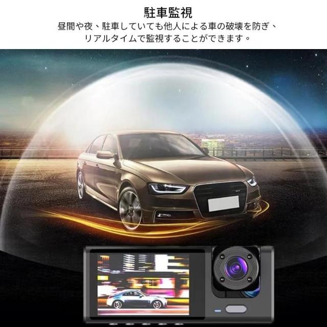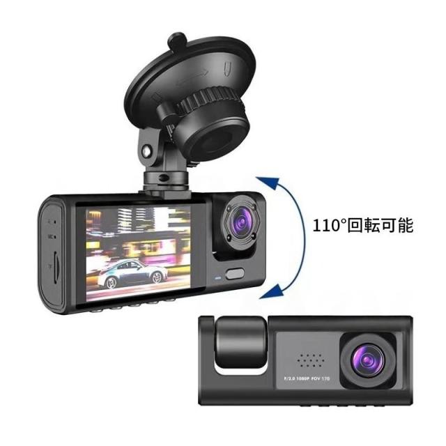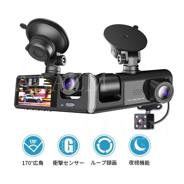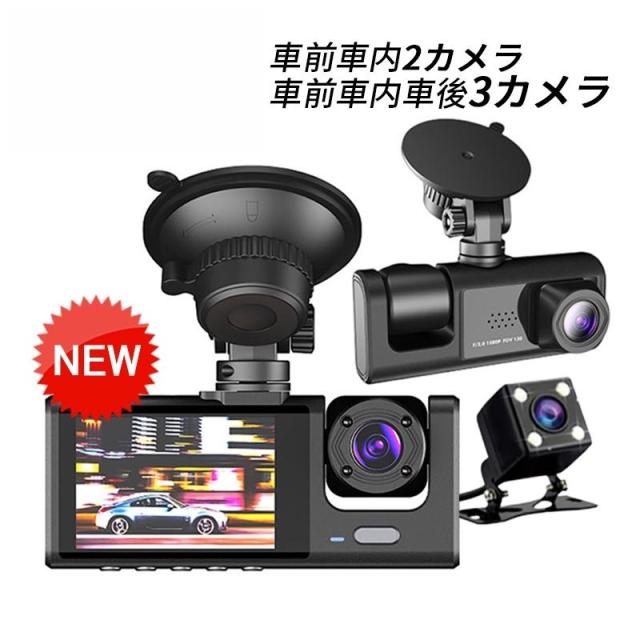 商品特徴:ドライブレコーダー ドラレコ コンパクト 解像度:1080P+720P500万画素 常時/緊急/駐車監視 フロント170°広角 車内:120°広角 リアカメラ:120°広角 コンパクト軽量設計 取付簡単 スクリーン:2インチ