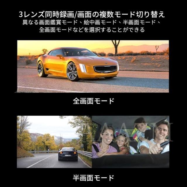 注意:3カメラ取付できますが、3カメラの画面を同時表示できない、2個カメラの画面のみ表示できます。<左>右ボタンを押して画面を取替えできます。