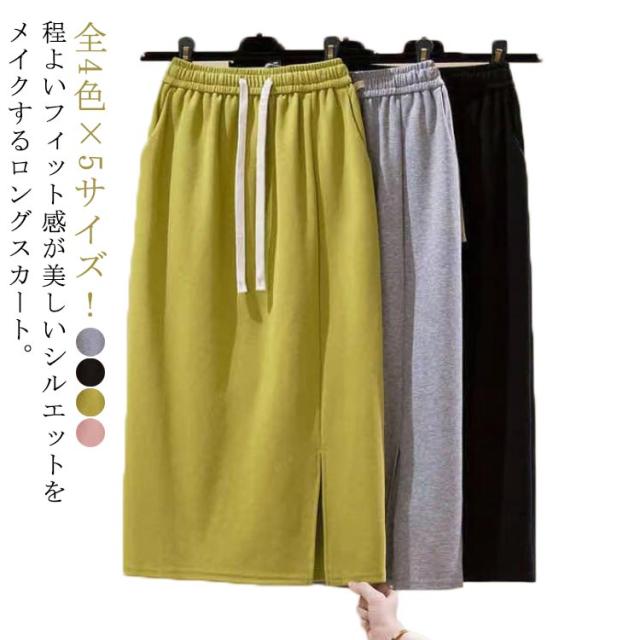 タイトスカート スカート ひざ丈 スエット ウエストゴム 楽チンレディースファッション ボトムス スカート