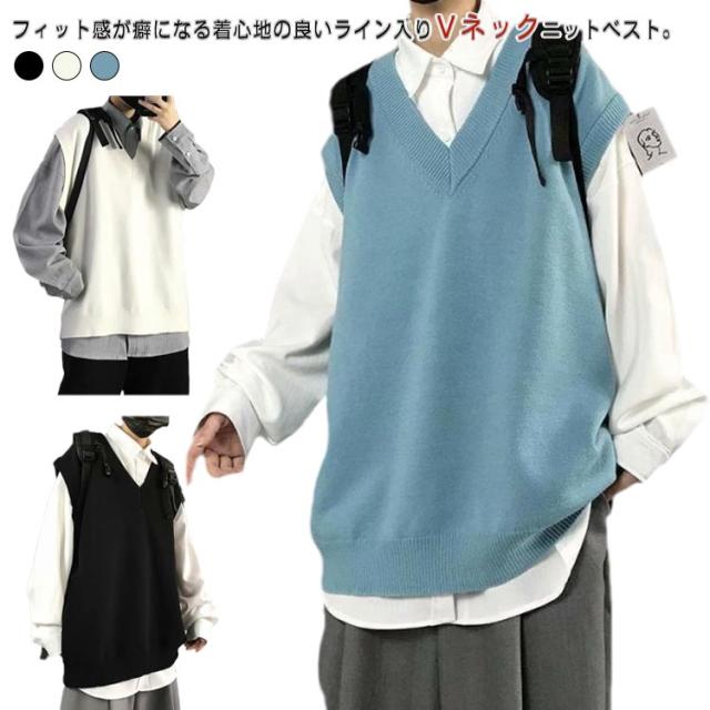 スクール ベスト メンズベスト ニットベスト 無地 Vネック セーター JK制服 ノースリーブ セーター