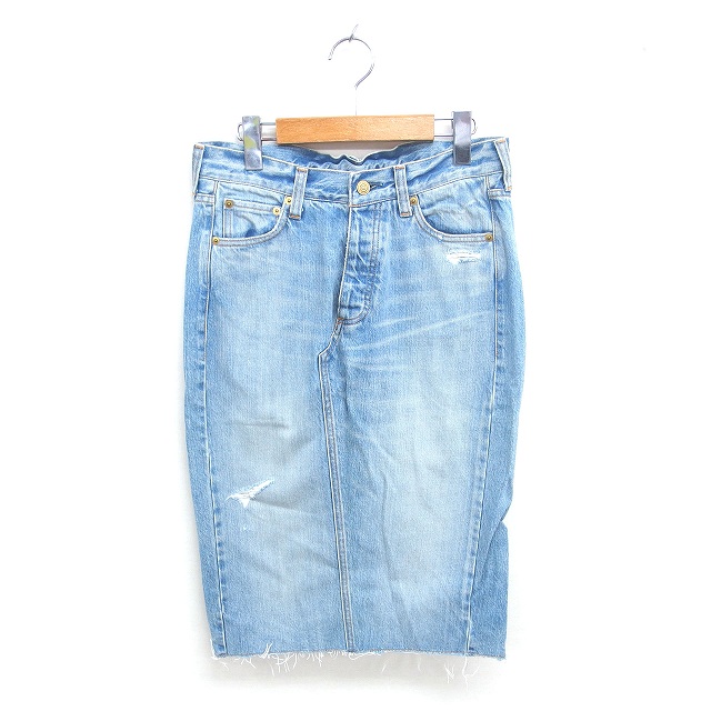 【中古】ラクラス デニム タイト スカート ミモレ丈 ロング スリット ダメージ加工 ボタンフライ 38 ブルー 青 /TT12