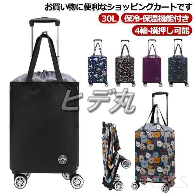 ショッピングカート 30L 折りたたみ 4輪 横押し 軽量 保冷 保温 ショッピングバッグ キャスター付き 巾着 キャリーバッグ キャリーカート 買い物カート ショッピングキャリー エコバッグ 防水 撥水加工 敬老の日 プレゼント 保冷バッグ お買い物