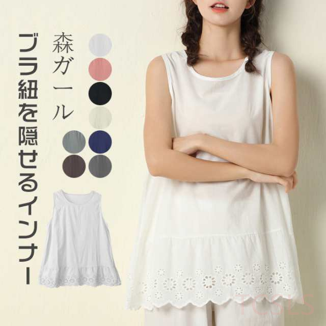 裾レースタンクトップ 重ね着 リネン フリーサイズ レディース ゆったり 夏服 サマー 春 夏 秋 涼しい 大人可愛い 裾レース トップス ブラウス ノースリーブ Aライン マタニティ インナー キャミソール着回し シンプル