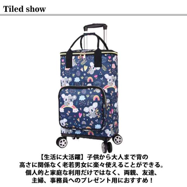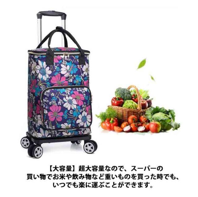 | 【ショッピングカート】【4輪大容量】【保温・保冷】【12color】 【保温保冷】バッグの内側に保冷保温効果のあるアルミフィルムを使用しており、生鮮食品などの買い物に便利にお使いいただけます。 【折り畳み収納便利】バッグを取り外して、キャリーを簡単に折り畳んでバッグを入ることができます。使用していない時はコンパクトに折り畳めるので、リビングに置いても場所を取りません。 【大容量】超大容量なので、スーパーの買い物でお米や飲み物など重いものを買った時でも、いつでも楽に運ぶことができます。 【最大耐荷重20KG】一台両用で、米や飲料などの重いものを手軽に運搬できます。 【安定感抜群の4輪】耐久性・安定性に優れたタイヤを採用します。360度回転するので、スムーズに方向を変えやすいです。静音設計により、走行時の音が気になりにくいのはメリットです。 【ハンドルは3段階伸縮可能】乗せる荷物の大きさや使う人の身長に応じて、ハンドルのボタンを押すことで高さが3段階調整できます。 【生活に大活躍】子供から大人まで背の高さに関係なく老若男女に楽々使えることができる。個人的と家庭な利用だけではなく、両親、友達、主婦、事務員へのプレゼント用におすすめ! 【出先で大活躍】日常生活(水購入時、ゴミだし、灯油、駐車上から家までの運搬など)、 釣り、引っ越し、旅行、運動会、バーべーキュー、キャンプなどのアウトドアシーンでも大活躍間違いなし! | |