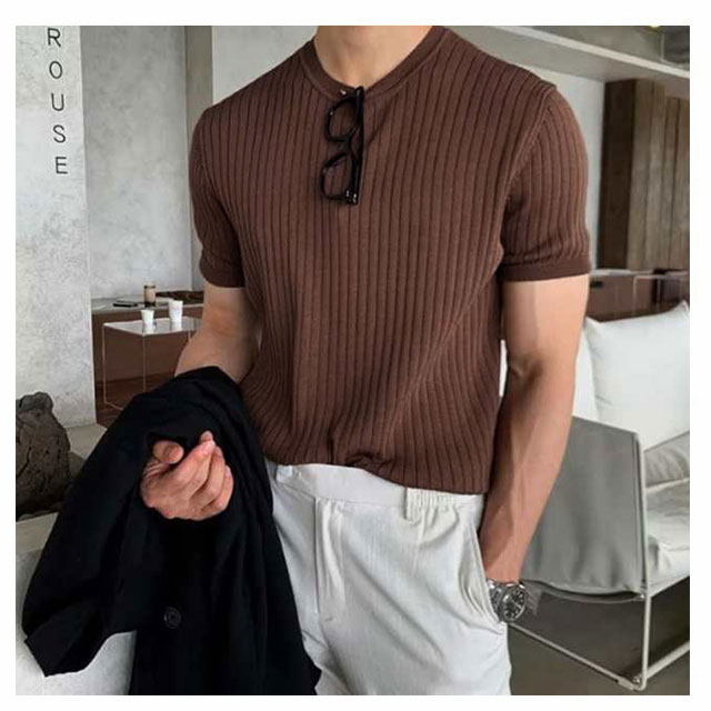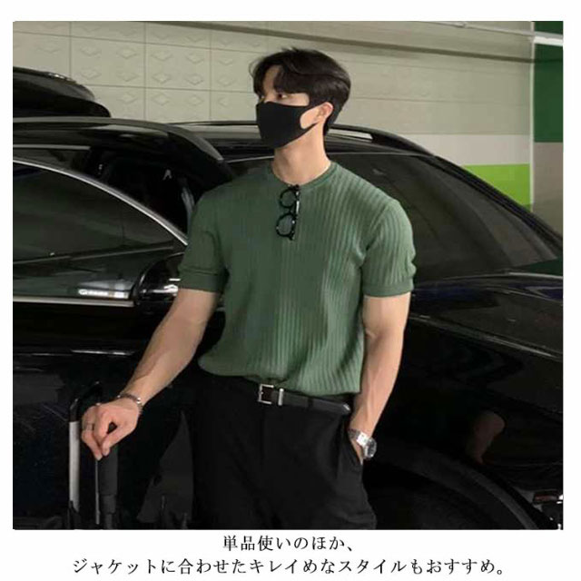 サマーニット メンズ tシャツ 半袖ニット 冷感 涼しい ニットTシャツ 夏 サマーセーター リブニット ニットトップス カットソー ニットソー 薄手 クルーネック 丸首 スリム おしゃれ カジュアル 春 夏 春服 夏服 送料無料