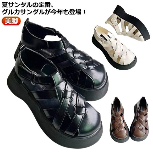 グルカサンダル グルカサンダル フラットサンダル レディース ボリュームソール スポーツサンダル 厚底 ローヒール フラット 5cmヒール 前詰まり サンダル 軽量 軽い カジュアル かわいい 歩きやすい ブラック 黒 白 ブラウン 美脚