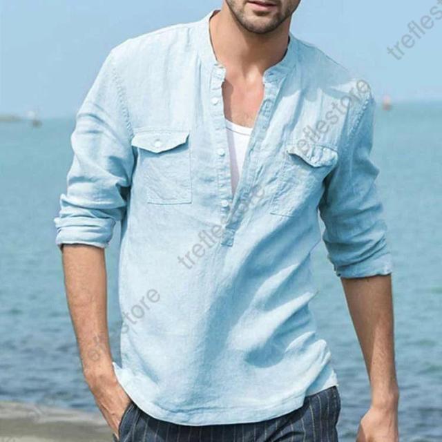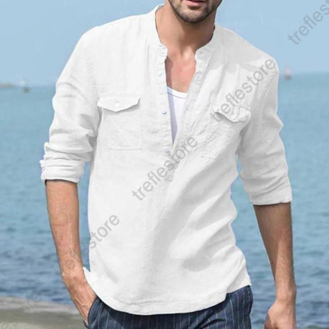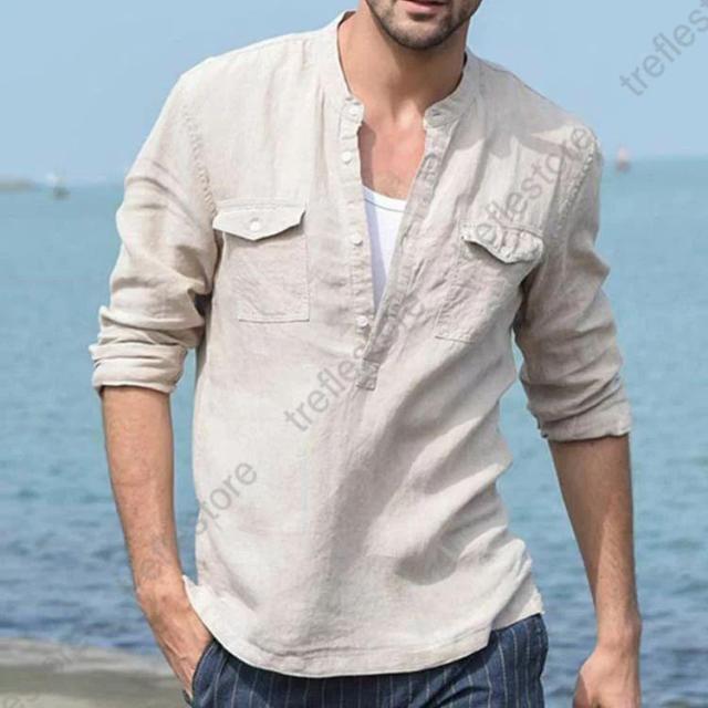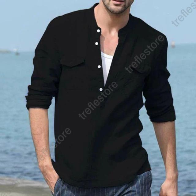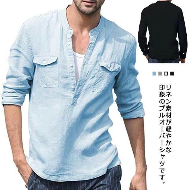 【ポイント10倍!】リネンシャツ メンズ 長袖 Tシャツ プルオーバー リネン カジュアルシャツ 綿麻 薄手 涼しい 無地 ストレッチ おしゃれ 大きいサイズ シンプル カジュアル