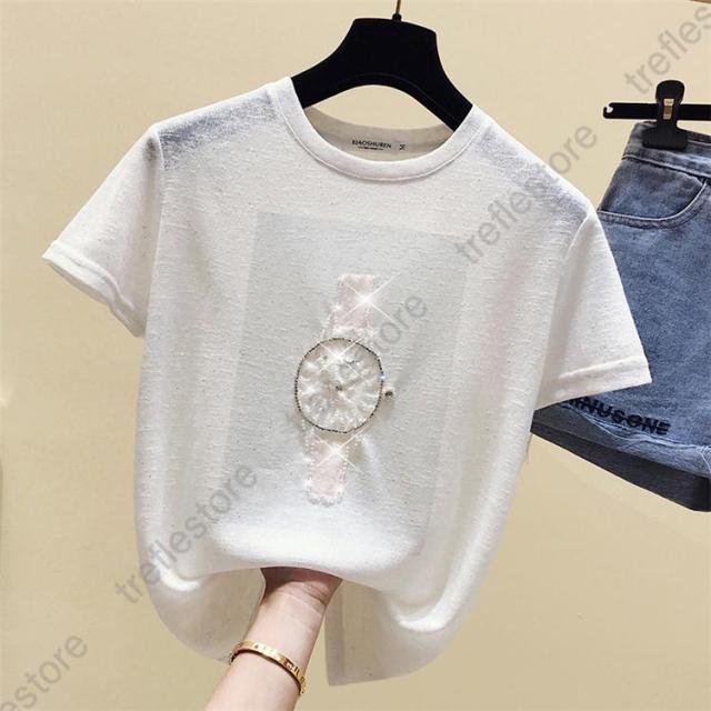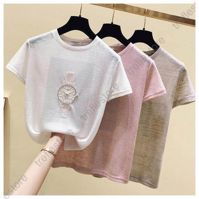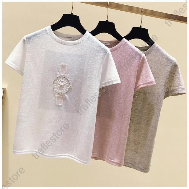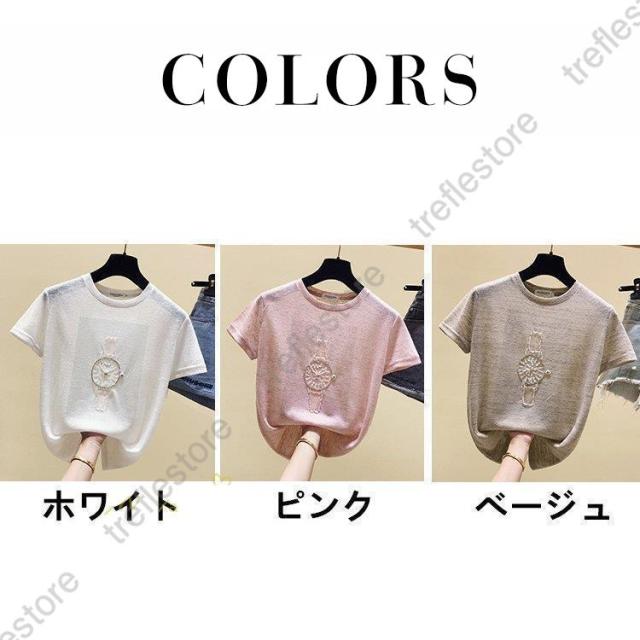【ポイント10倍!】Tシャツ tシャツ 着痩せ 夏新作 トップス 新作 レディース 韓国風 ゆったり 着回し 半袖 キラキラ 薄手 夏コーデ インナー アウター お出かけ きれいめ 女性着