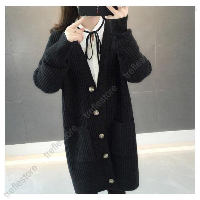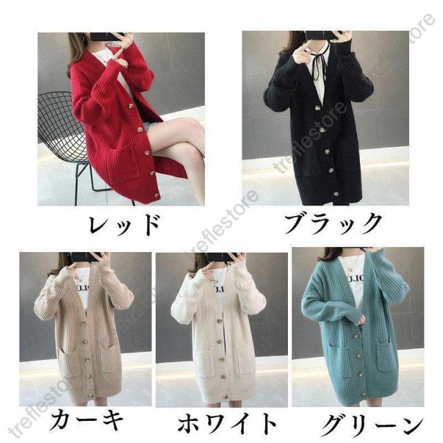 カーディガン レディース 秋冬 長袖 ニット ロング丈 ゆったり ニットカーデ アウター レディース 無地 通勤 着痩せ 着やすい