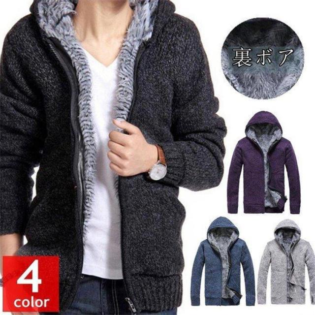 【ポイント10倍!】ニットカーディガン 裏ボア ジャケット メンズ 秋冬 セーター ニット 厚手 カジュアル アウター 長袖 防寒 あったか 無地 シンプル 通勤 通学