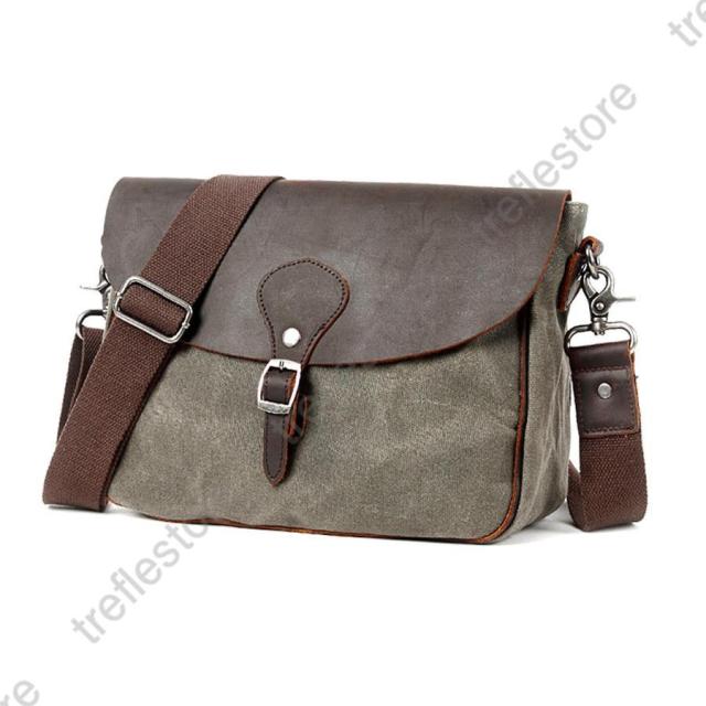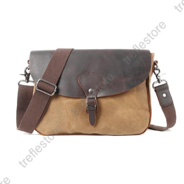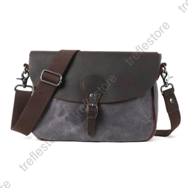 キャンバス生地と牛革を組み合わせてレトロデザインが味わいのあるショルダーバッグです。キャンバス生地はワックスキャンバスを使用しており、防水性と耐久性に優れ、ヴィンテージ風のオイルレザーと相まって独特の風合いも楽しめます。財布やスマホはもちろんiPadなども納まる収納力でポケットも多く小分けで整頓して収納することができます。
