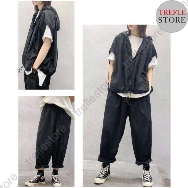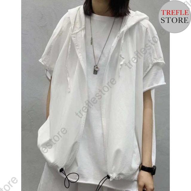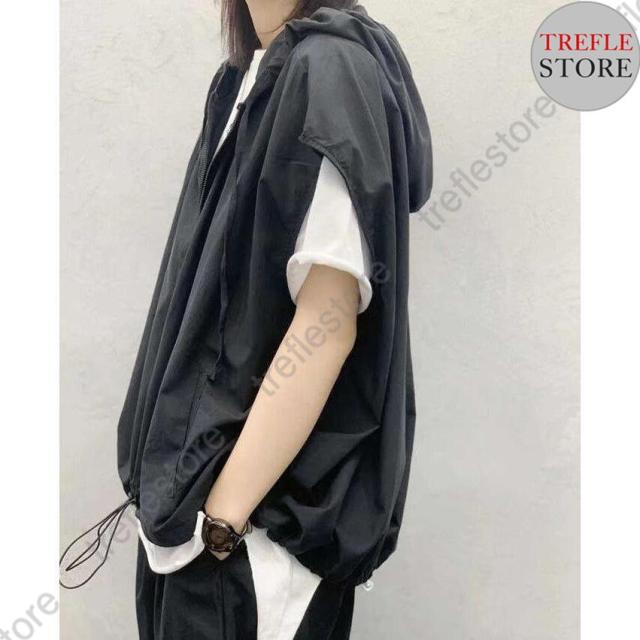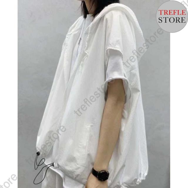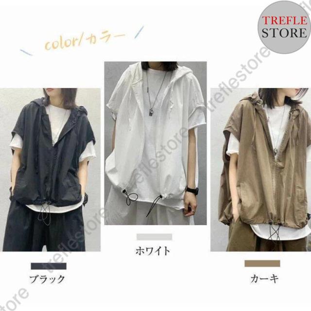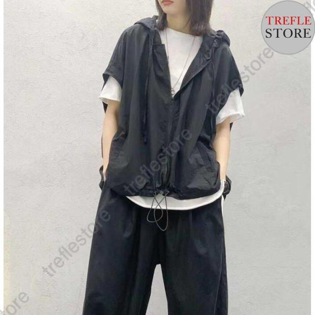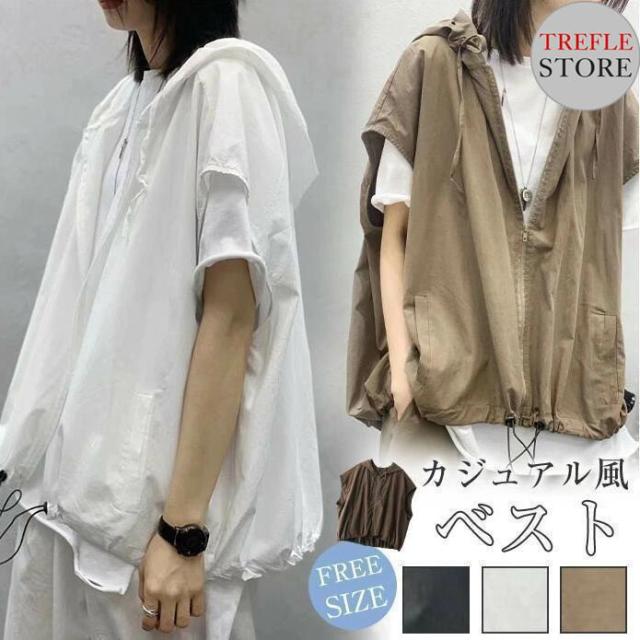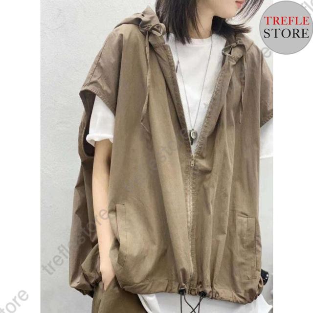 【ポイント10倍!】ベスト レディース パーカー 春 夏 半袖 カジュアル ジレベスト ジレ アウター 前開き コーデ おしゃれ 無地 レトロ 女性 ゆったり アウター