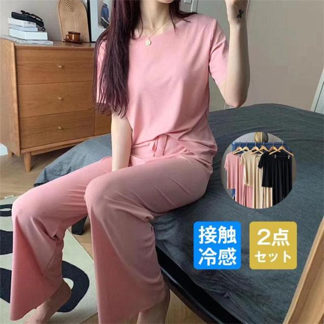 パジャマ 2点セット 上下セット 接触冷感 レディース 夏 ルームウェア 女性 可愛い 部屋着 寝巻き お姫さま 安い 可愛い 動きやすい
