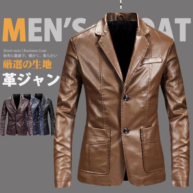 レザージャケット メンズ テーラード 細身 スリム PUレザー 革ジャン ジャケット クール 防風防寒