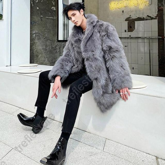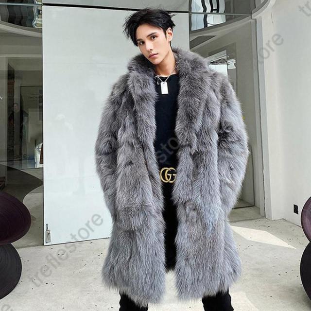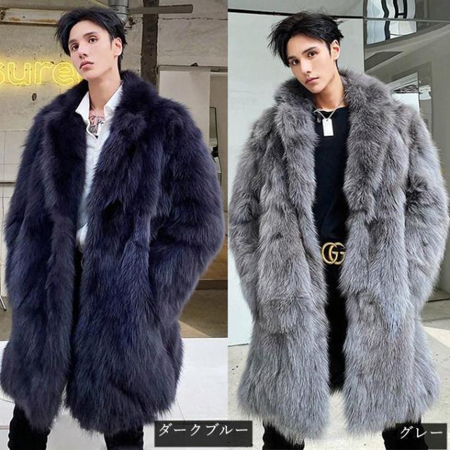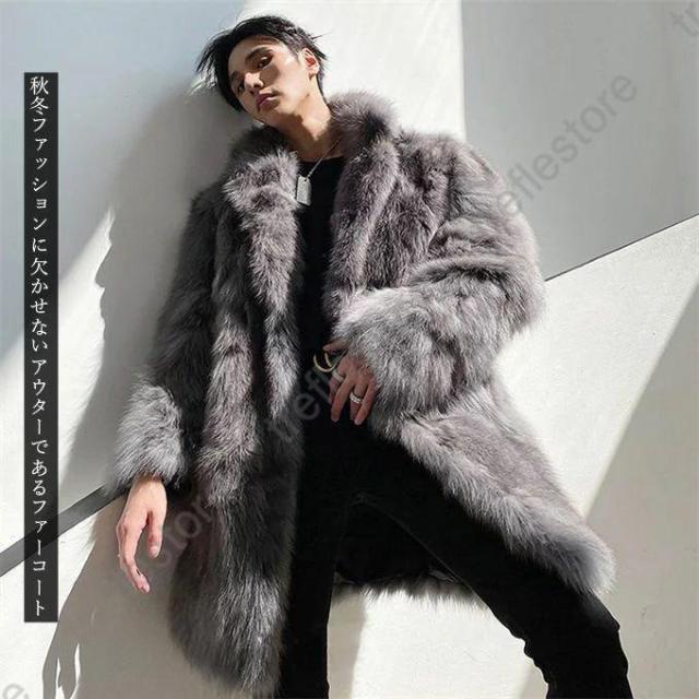 【ポイント10倍!】ファーコート メンズ 厚手 毛皮コート フォックス ロングコート フェイクファー 無地 冬物 暖かい カジュアル ジャンパー アウター カジュアル ふわふわ