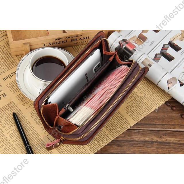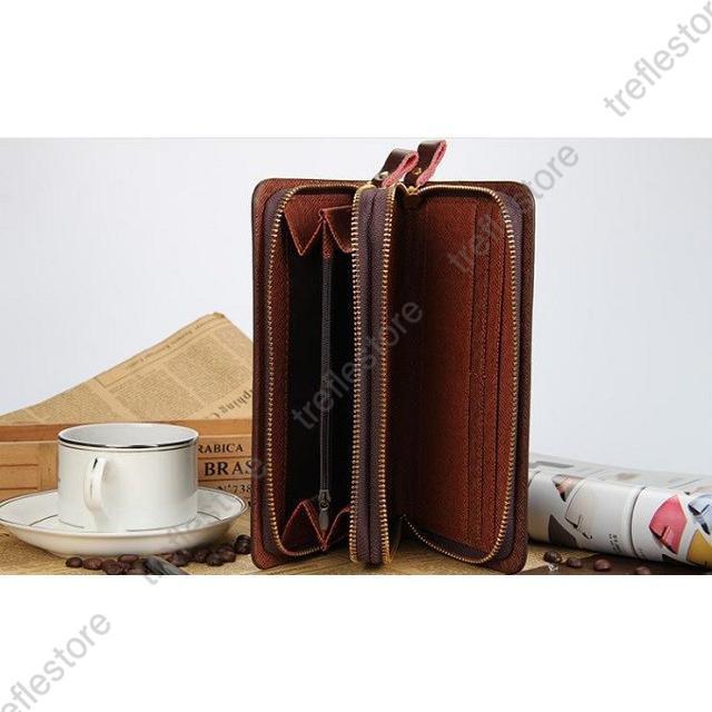 【ポイント10倍!】メンズ 財布 ラウンドファスナー ブラック ブラウン 大容量 ダブルファスナー 合成皮革 PU ギフト 長財布