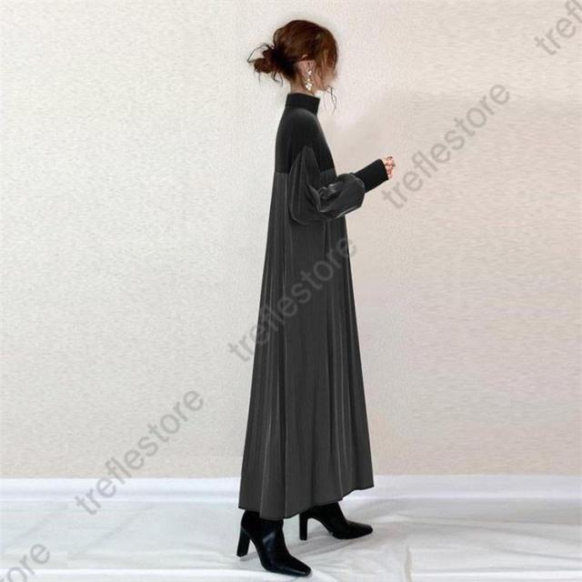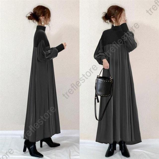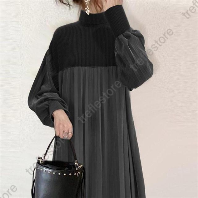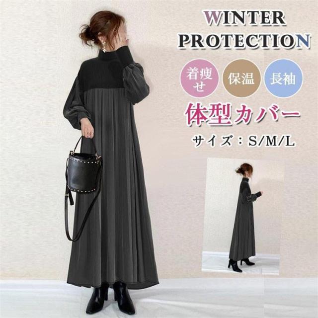 【ポイント5倍!】秋冬新作 ワンピース レディース ロングワンピース プリーツワンピース ハイネック ニットワンピース 体型カバー 大人 可愛い カジュアル 着痩せ