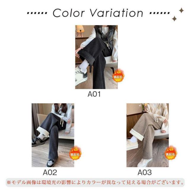 【ポイント10倍!】ワイドパンツ ロング丈 コーデュロイ お出かけ 裏起毛パンツ 裏ボア シンプル 大人 可愛い 無地 楽ちん ズボン ゆったり パンツ ルームウェア
