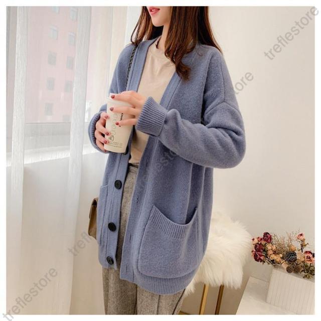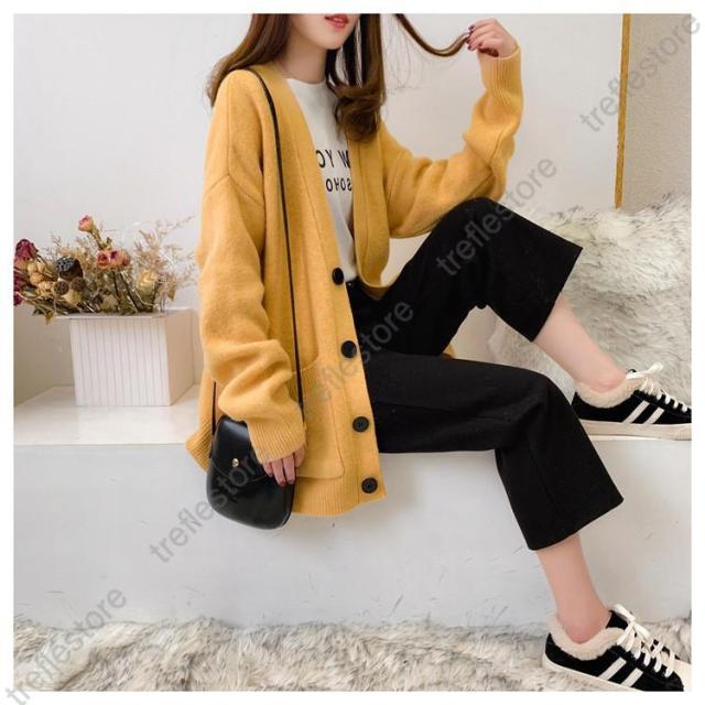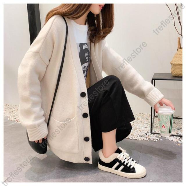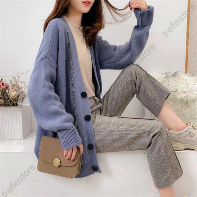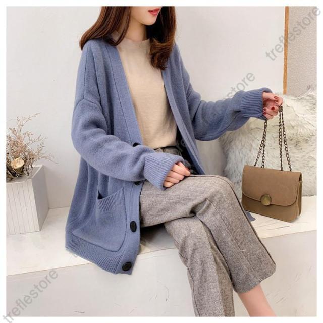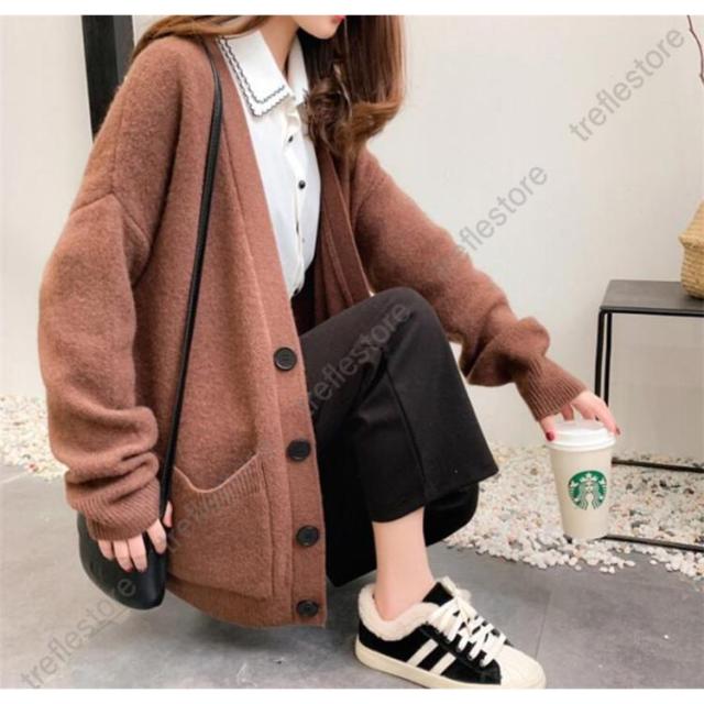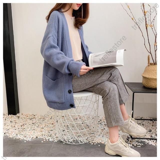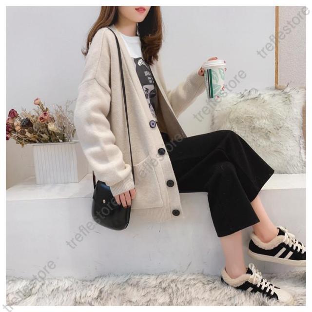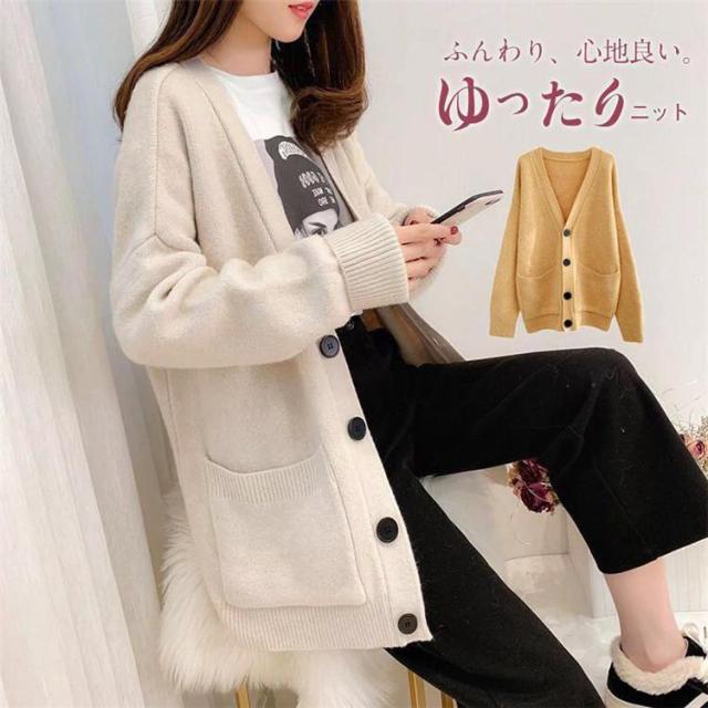 【ポイント10倍!】ニットカーディガン レディース アウター 春秋 ニットウェア Vネック 羽織り コーディガン 秋冬 ゆったり ロング丈 前開き 通学 通勤 体型カバー