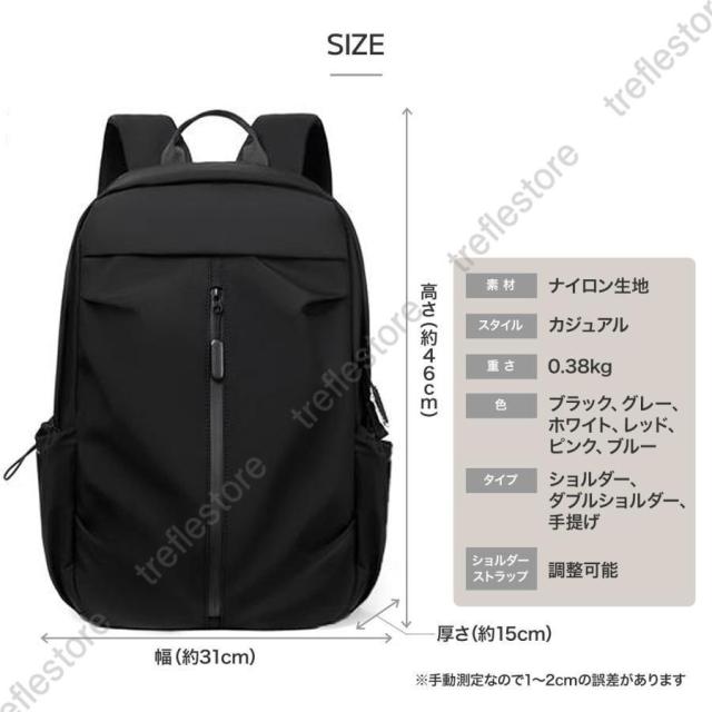 商品名:リュックレディース リュックサック 軽い 大容量 通学 男子 女子 a4 学生 シンプル 赤 黒 軽量 pc パソコン 男女兼用 通勤