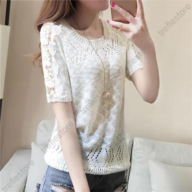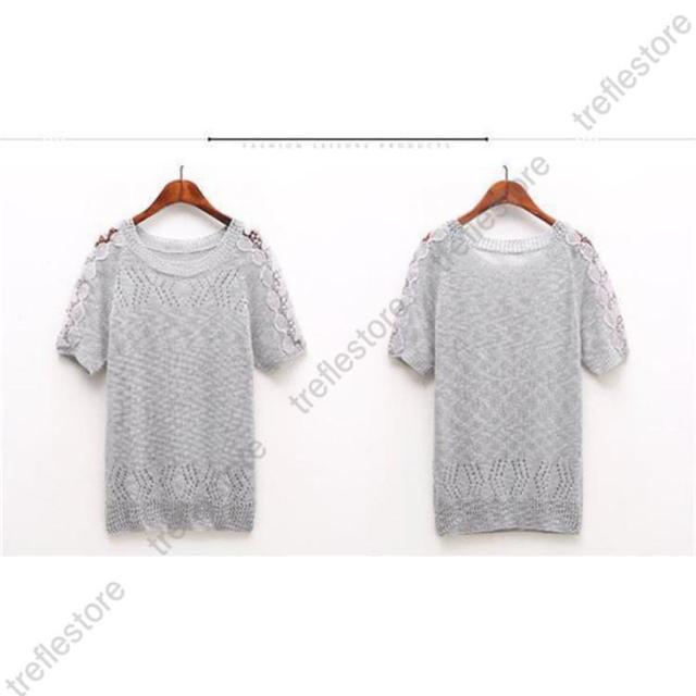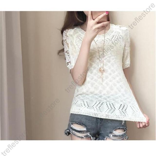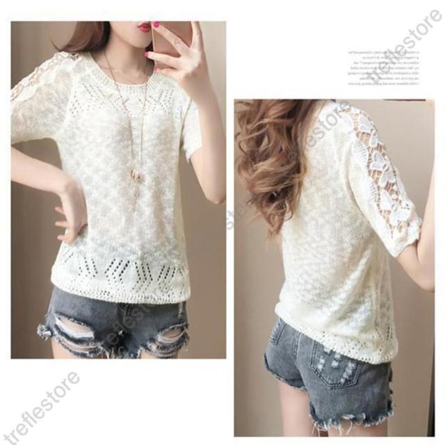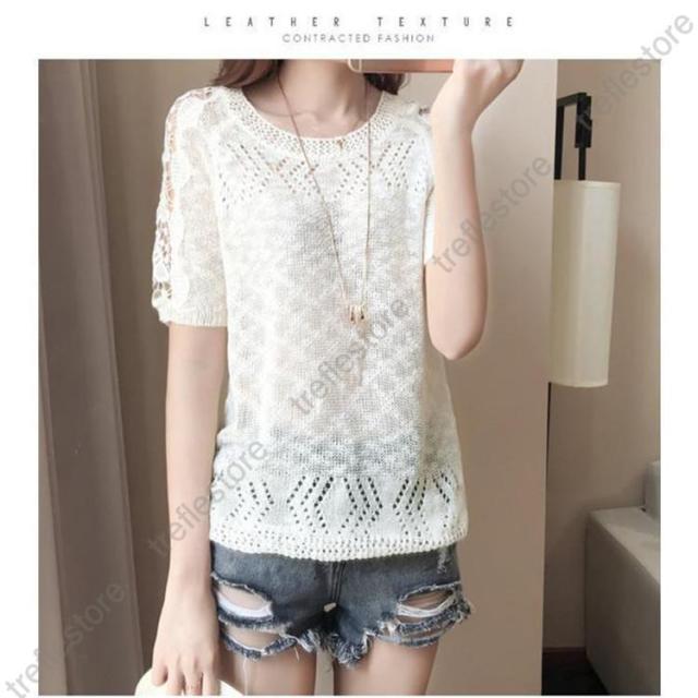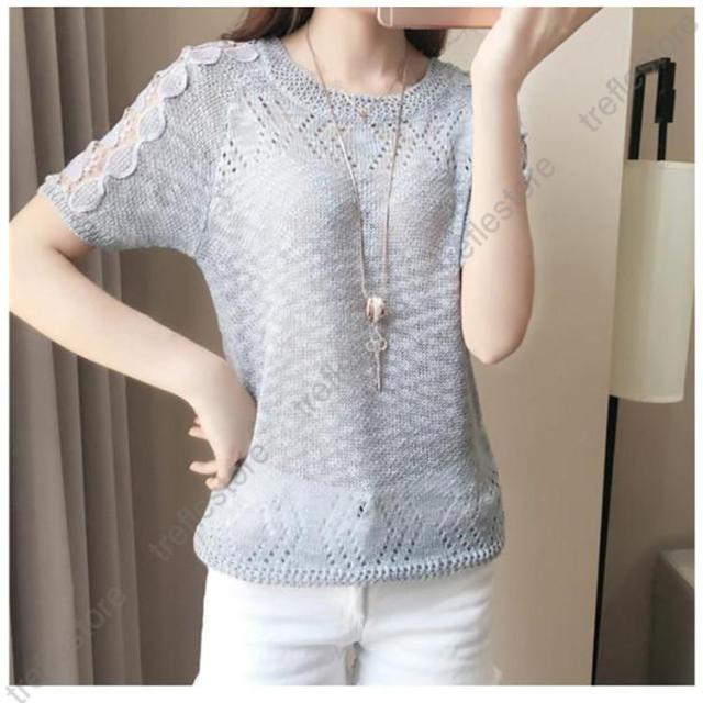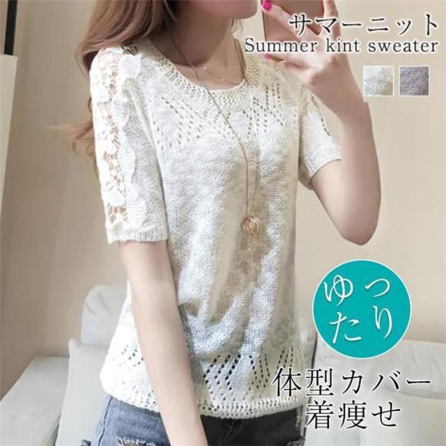 【ポイント10倍!】サマーニット 春 夏 レース 半袖 丸首 薄手 花柄 ラウンドネック 透かし彫り ゆったり レディース 編み 可愛い 透け 透明 ニット トップス