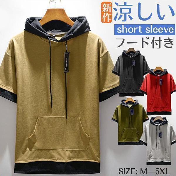 【ポイント10倍!】半袖パーカー メンズ パーカー 夏 半袖 薄手 ポケット フード付き おしゃれ カジュアル 涼しい スポーツ 新作 ゆったり 大きいサイズ