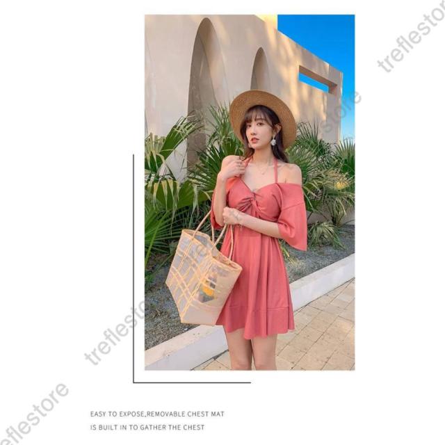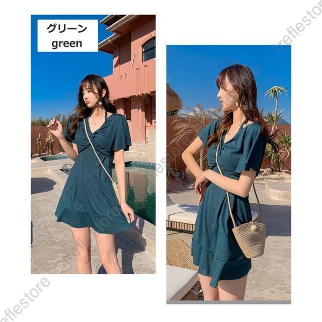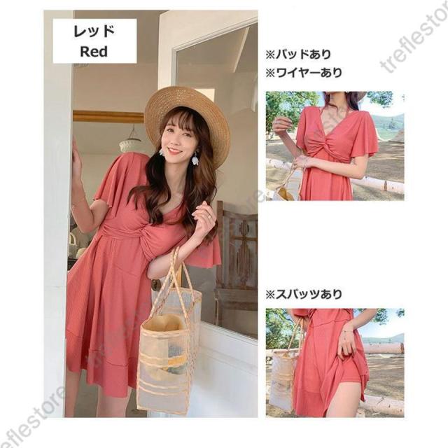 水着 レディース ワンピース ワンピースタイプ 2way 体型カバー 着痩せ 肩出し フリル 韓国風 20代 30代 40代 ママ 無地 可愛い おしゃれ シンプル 温泉 海 プール 水遊び 夏