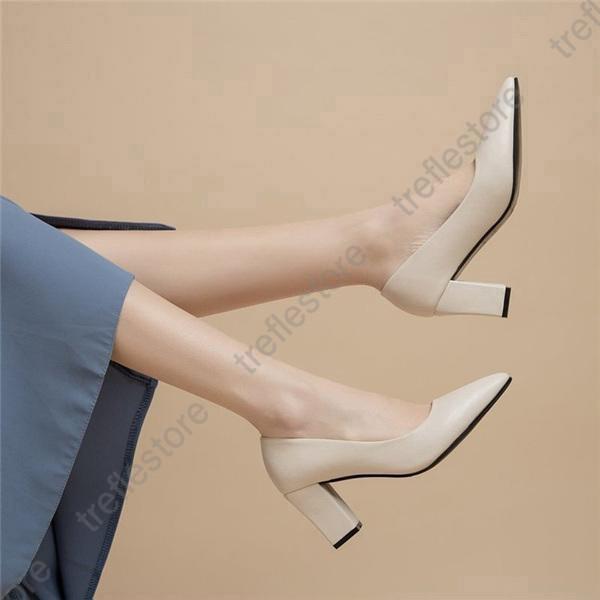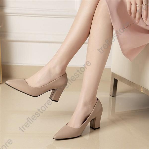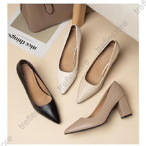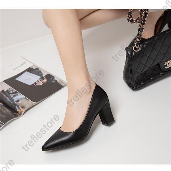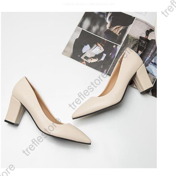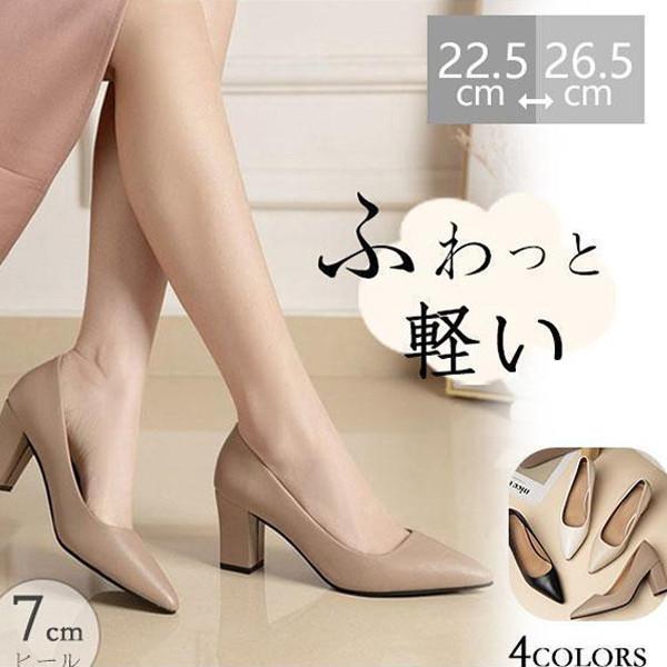 【ポイント10倍!】秋新作 パンプス レディース 靴 スリッポン ハイヒール チャンキーヒール 通勤 仕事 太ヒール 無地 スクエアトゥ シンプル 7cmヒール