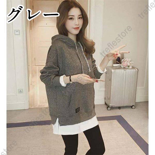 【ポイント10倍!】パーカー レディース トップス 重ね着風 チュニック 体型カバー トレーナー プルオーバー 大きいサイズ ゆったり カジュアル フード カットソー