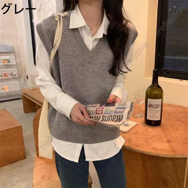 【ポイント10倍!】ニットトップス レディース 秋 冬 秋冬 黒 ベスト セーター ニット トップス ブラック ベージュ ブラウン グレー レッド ネイビー