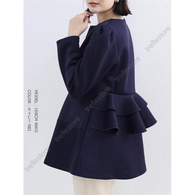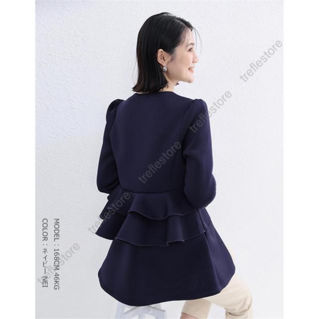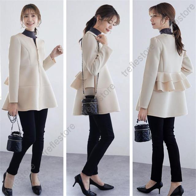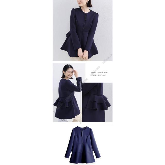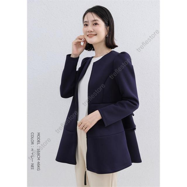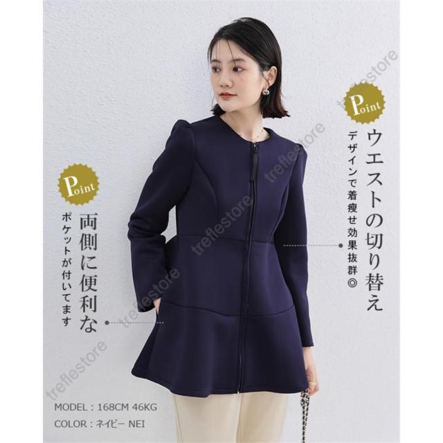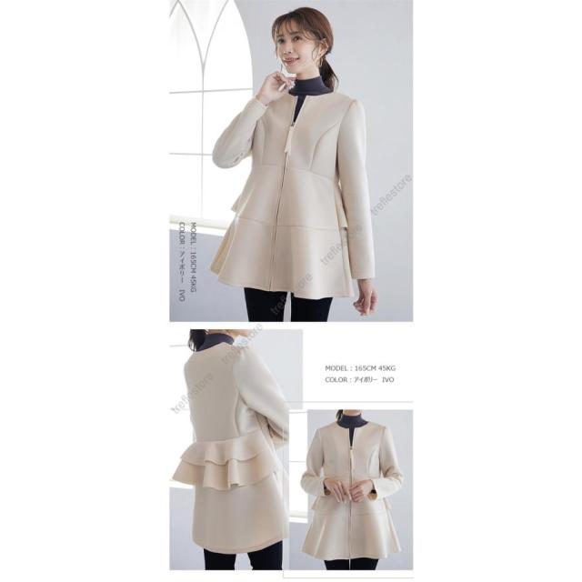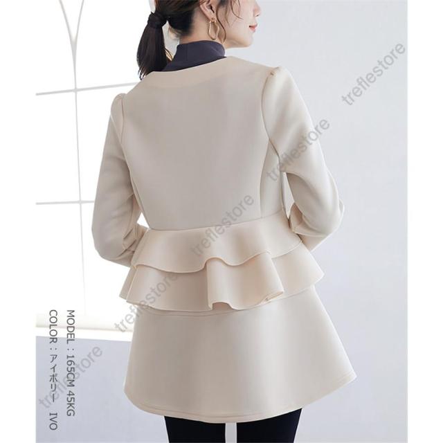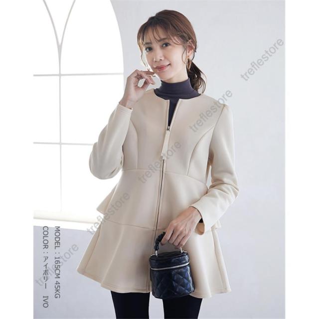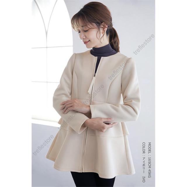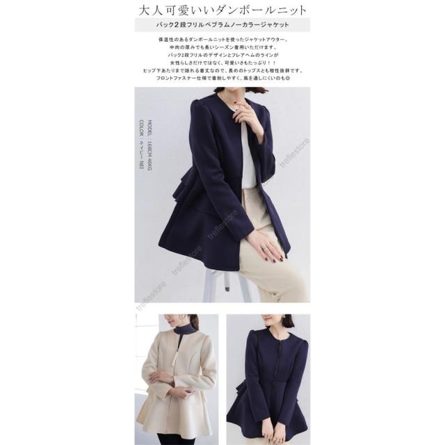 【ポイント10倍!】ダンボールニットジャケット ノーカラージャケット パーカー アウター バックフリルジャケット 秋冬アウター ペプラム バックフリル ファスナー 保温