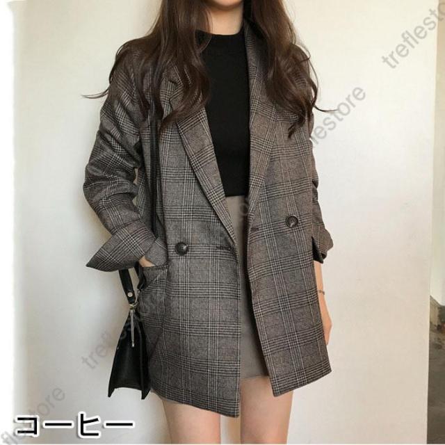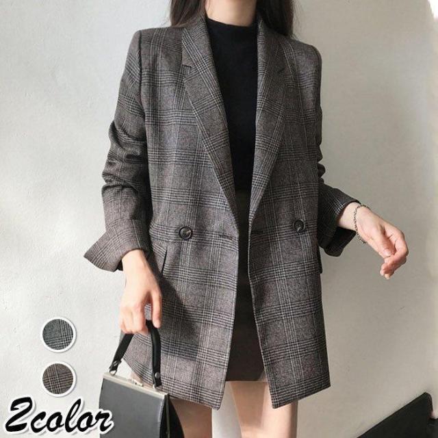 【ポイント10倍!】ブレザー スーツ レディース テーラードジャケット 長袖 テーラード ジャケット オシャレ チェック柄 ブレザースーツ 30代 カジュアル 韓国風 通勤 OL 40代