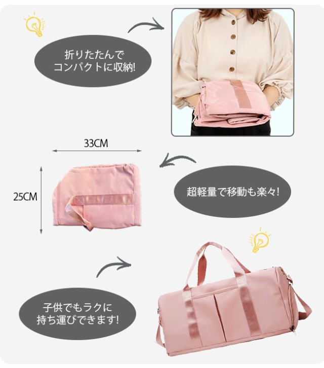 【ポイント10倍!】ボストンバッグ レディース メンズ 旅行バッグ 修学旅行 大容量 軽量 キャリーオンバッグ シューズ収納 乾湿分離 3way 防水 折りたたみ コンパクト スポーツバッグ ジム ゴルフ 1泊 2泊