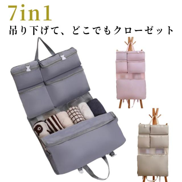 トラベルポーチ クローゼット 吊り下げ 大容量 旅行 便利グッズ 吊るす 吊り下げポーチ 収納ポーチ 掛ける 7in1 大浴場 サウナ