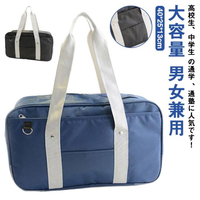 スクールバッグ 学生 女子高生 トートバッグ ショルダー 手提げバッグ サブバッグ 大容量 スクバ 通学カバン 通学バッグ シンプル 無地 メンズ 男女兼用 肩掛け 塾バッグ 制服 コスプレ 黒 紺