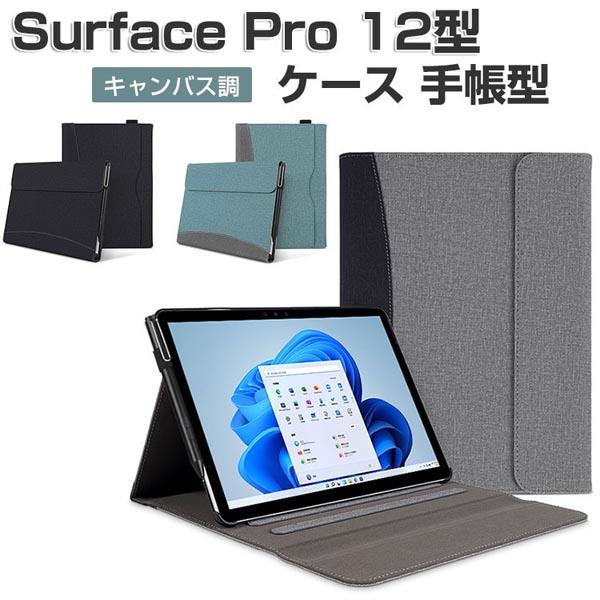 Microsoft Surface Pro 12インチ ケース 2025モデル サーフェス プロ 12型/インチ タブレット 2-in-1 キャンパス調 PC+PUレザー製 人気 おすすめ おしゃれ 汚れ防止 お洒落な スタンド機能 キーボードをつけたまま 収納可能です カッコいい 手帳型カバー ケース CASE