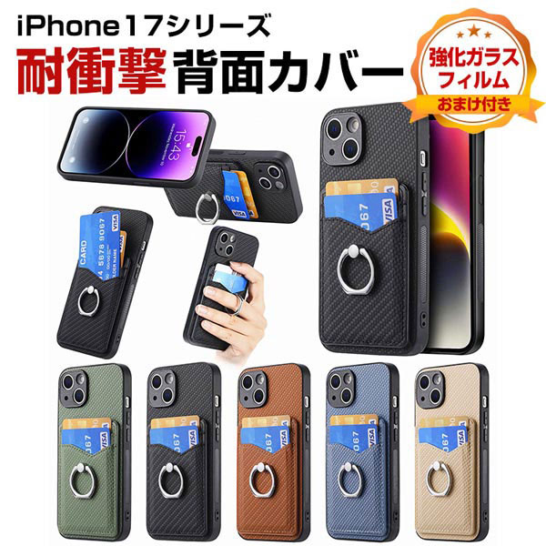 アップル アイフォン Apple iPhone 17 17 Air 17 Pro 17 Pro Maxケース CASE TPU&PC&PUレザー 2重構造 背面レザー調 衝撃防止 スタンド機能 カード収納 リング付き 軽量 便利 実用 人気 指紋防止 耐衝撃カバー 背面カバー ハードシェル 強化ガラスフィルム おまけ付き