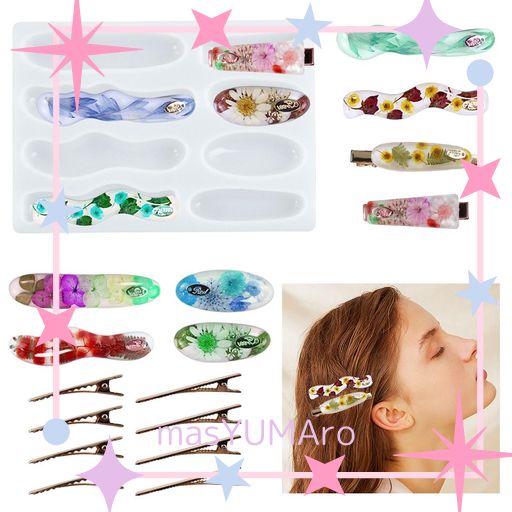 VOYYPHIXA シリコンモールド ヘアクリップ チャーム ヘアピン形 8個金具クリップ付き DIY 手作り UVレンジ エポキシ樹脂 手芸 ハンドメイド アクセサリー 装飾 プレゼント