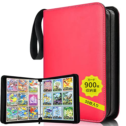 カードファイル カードバインダー 9ポケット 900枚収納 50枚入り 表面の防水性と耐摩耗性のトレカファイル ポータブルファスナー カードシー