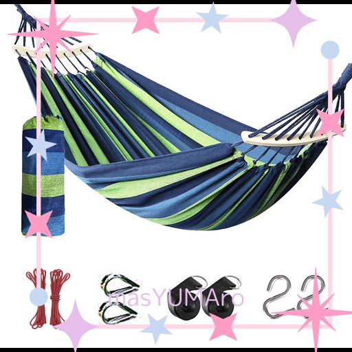 TIMILAND ハンモック 自立式 室内 ブルー系 転倒防止仕様 1~2人用 アウトドア ハンモック キャンプ 軽量 収納袋付き 木枠付き ブランコ ソフトな綿生地の素材を採用し 人気...