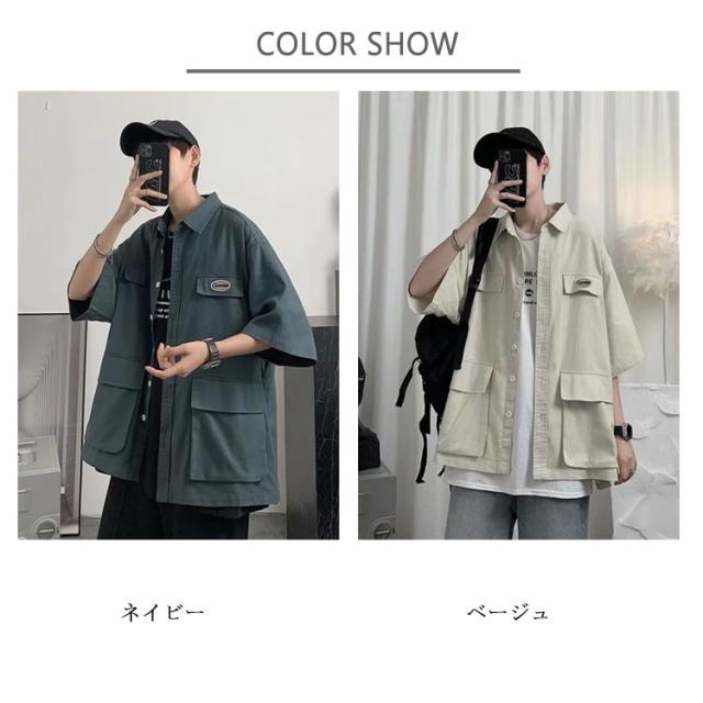 コーチジャケット ミリタリージャケット カジュアルシャツ メンズ オーバーサイズ コーチジャケット サマージャケット シャツジャケット 半袖 夏 ミリタリーシャツ 秋 春 アウター 羽織り カジュアルシャツ ビッグシルエット