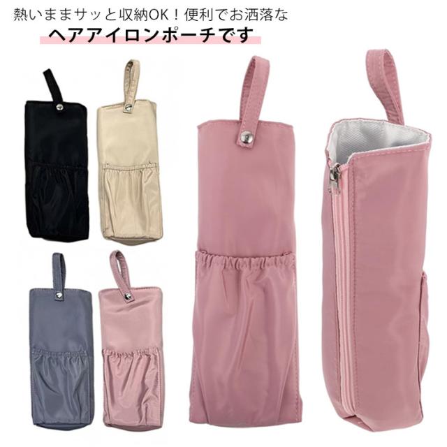 【ほっち】吊り下げ ヘアアイロンケース ミニヘアアイロン 熱いまま収納 耐熱ポーチ 収納ポケット付き 撥水 耐熱 持ち運び アイロンケース アイロンポーチ 旅行 出張 ヘアアイロンポーチ お洒落